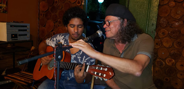 Ivson Iurian faz voz e violão, apresentando principlammente um repertório massa de bossa-nova e sambas das antigas.