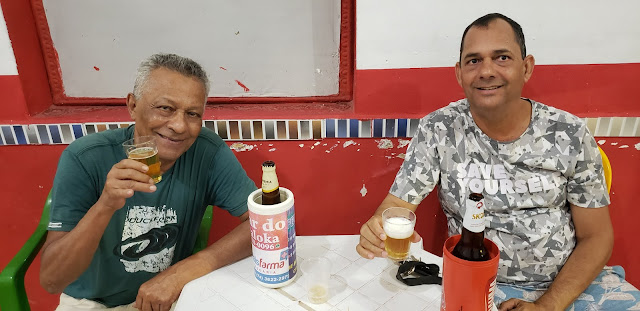 A dupla curte o show do Ricardo Mercês, que faz muita seresta e romantismo para galera que toma uma cervejinha.