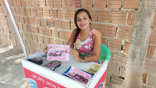 A jovem todos para adquirir o bilhete do Sol da Sorte, que estará com um sorteio especial no Dia Internacional da Mulher no próximo domingo (8), bom um HB20, moto e muito dinheiro.