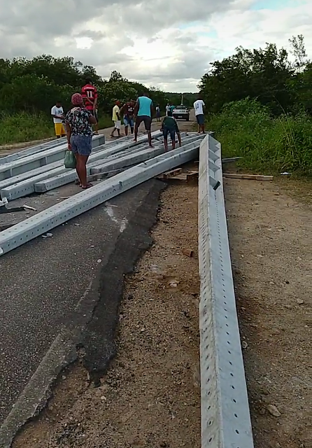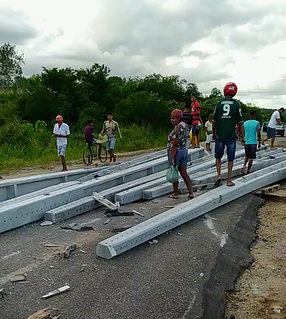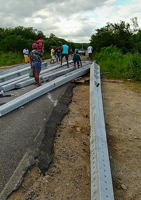 Segundo testemunhas os postes caíram da carroceria de uma carreta na região da comunidade do Quebra Coco, no municípios de Saúde.