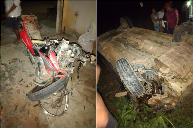 Segundo informações, os irmãos que estavam na moto colidiram frontalmente com o carro que capotou no acostamento.