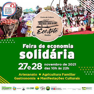 Nos dias dias 27 e 28 de novembro de 2021 a jornada continua. É a segunda edição da EcoArte Itaitu - Feira de economia solidária, no distrito de Itaitu, município de Jacobina-BA.