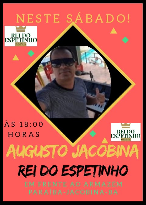 Neste sábado, 23 de março de 2019, tem show com Augusto Jacobina, a partir das 18h. Compareça, convide os amigos, as amigas, a família para apreciar as delícias do Rei do Espetinho.