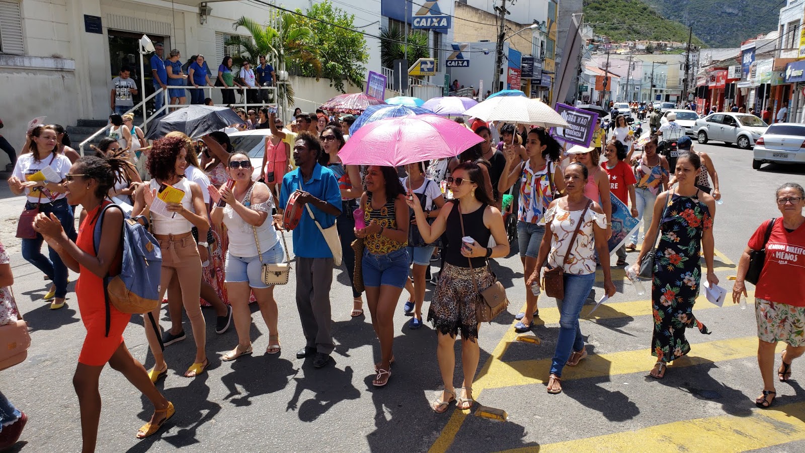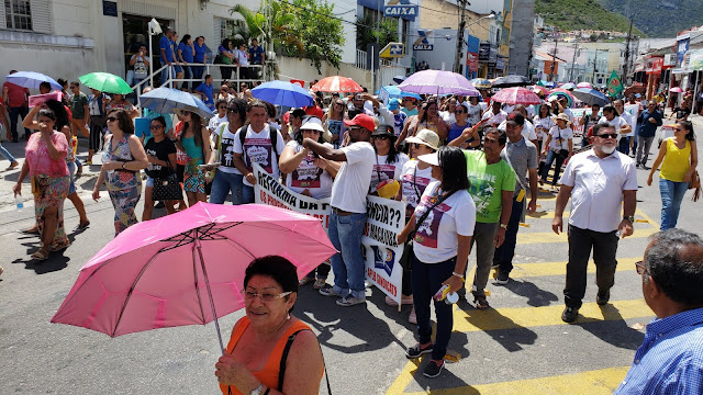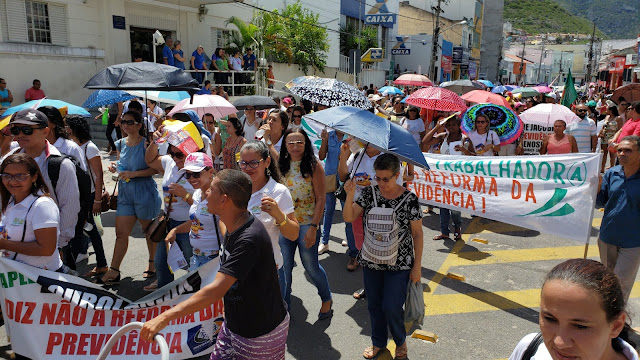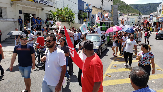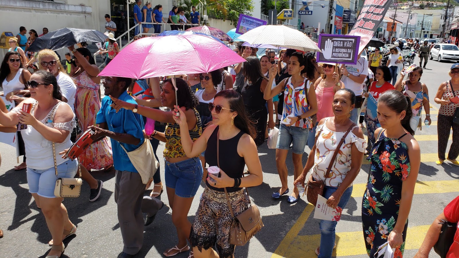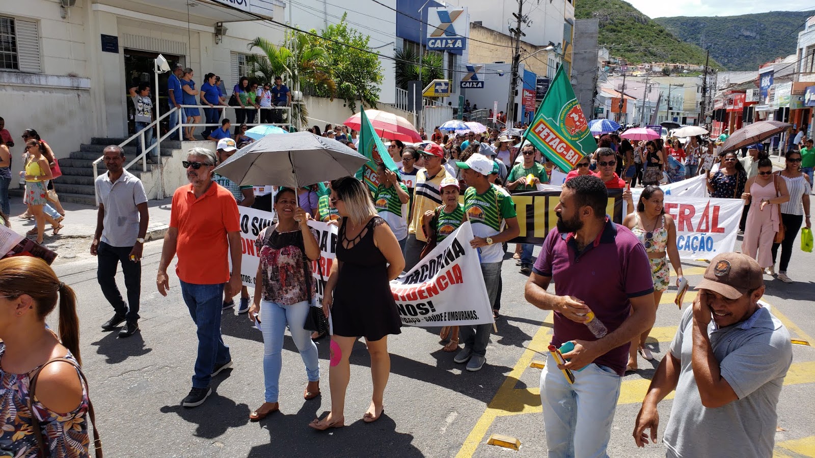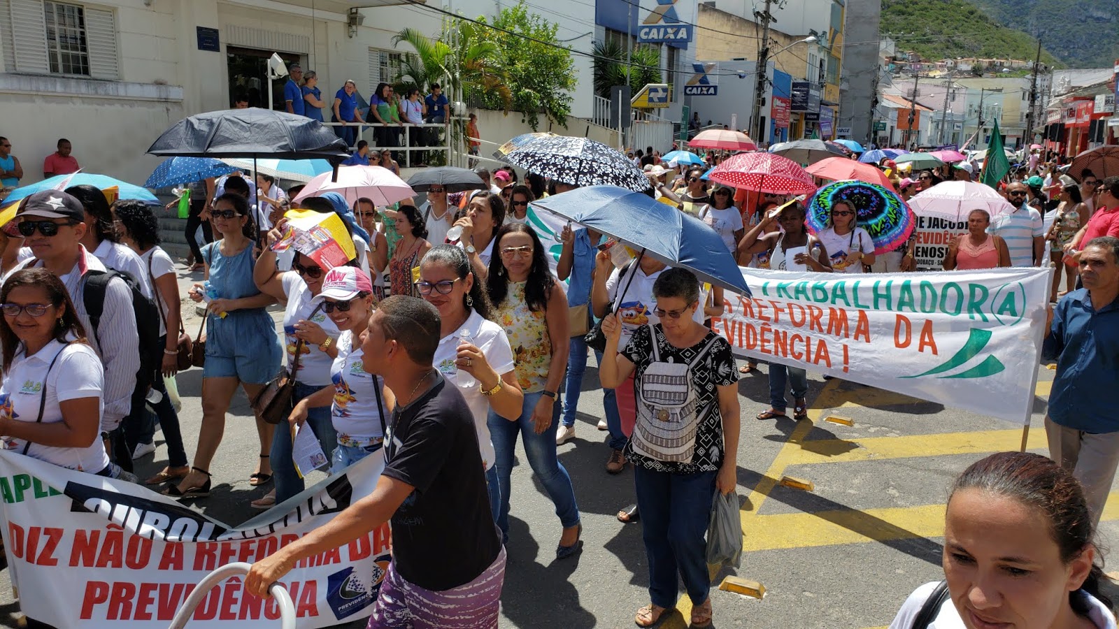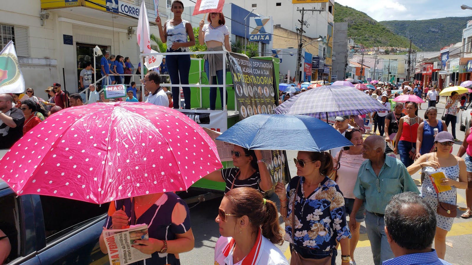 Na manhã desta sexta-feira, 22 de março de 2019, uma manifestação contra a Reforma da Previdência segue pelas ruas da cidade de Jacobina.