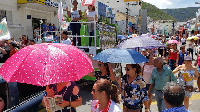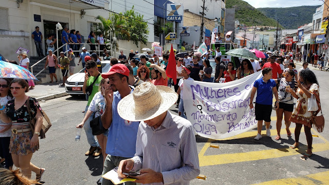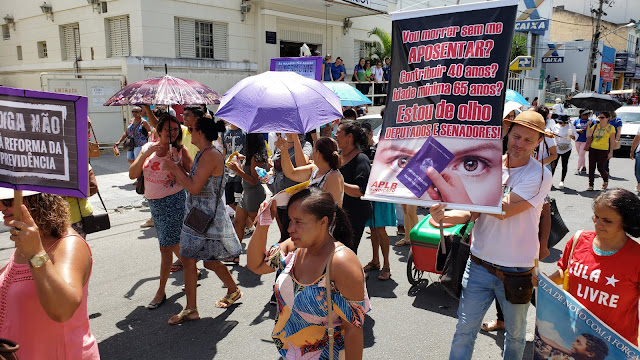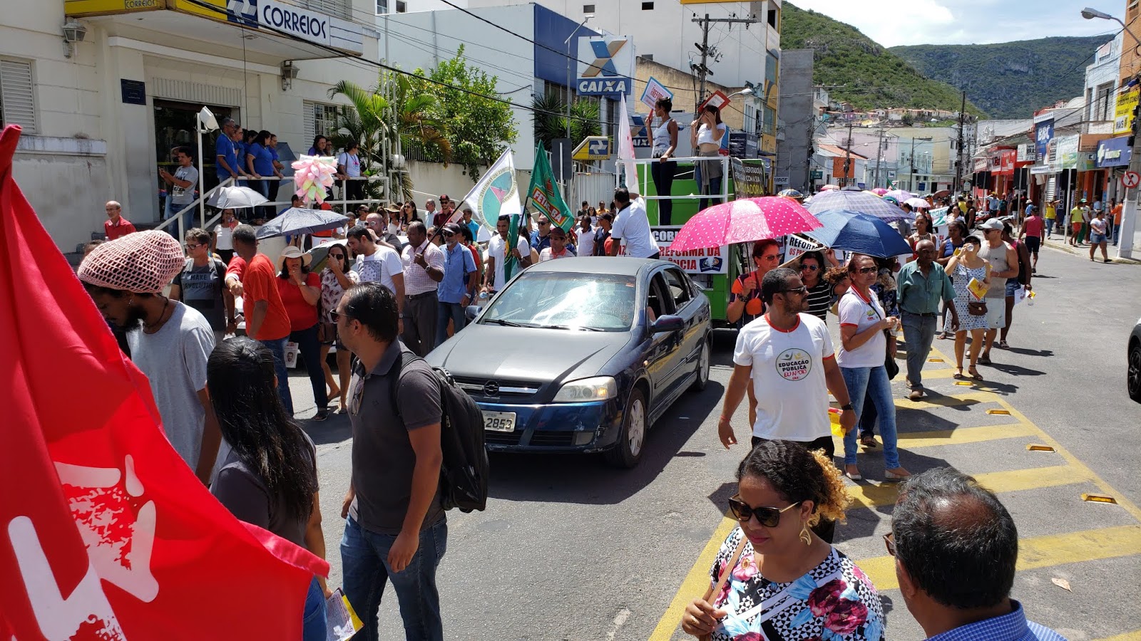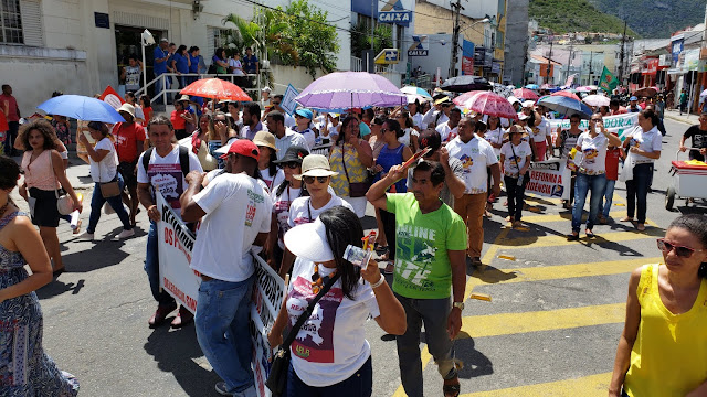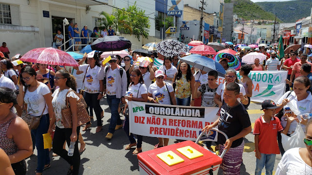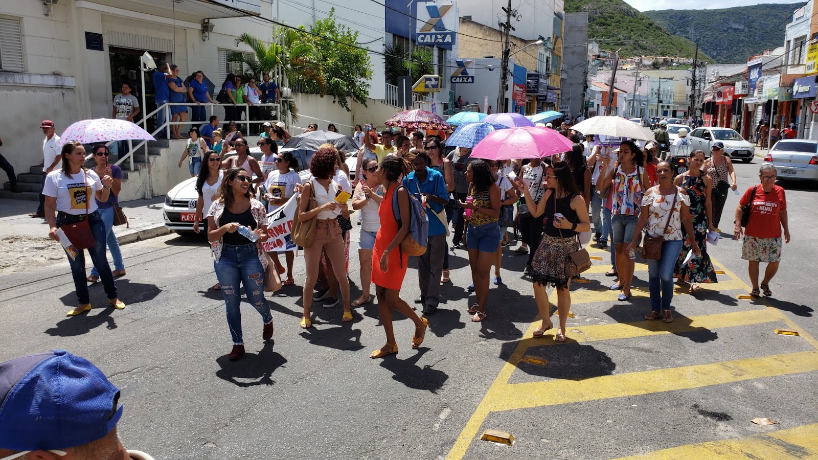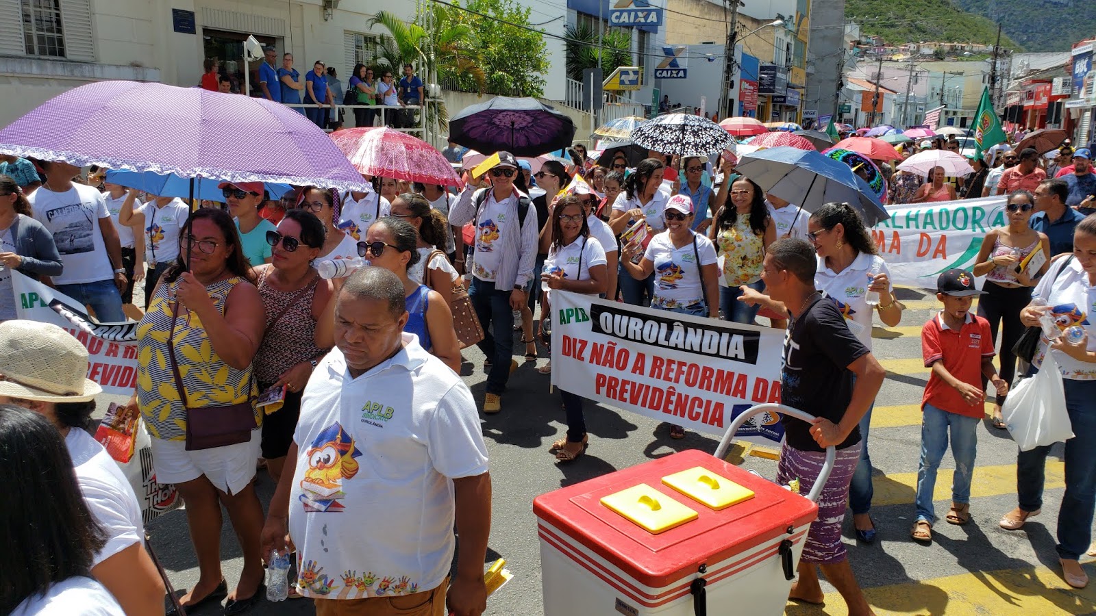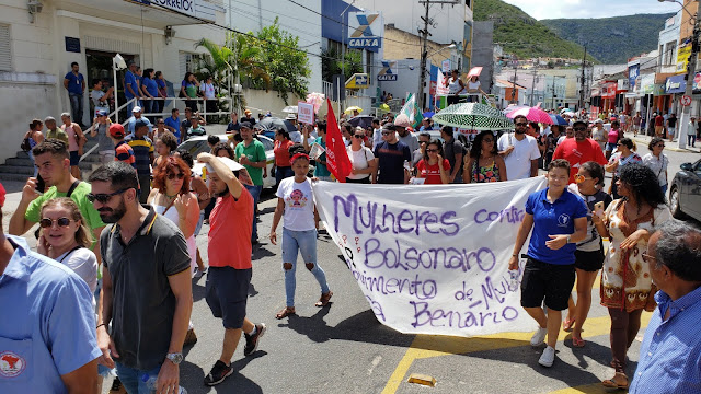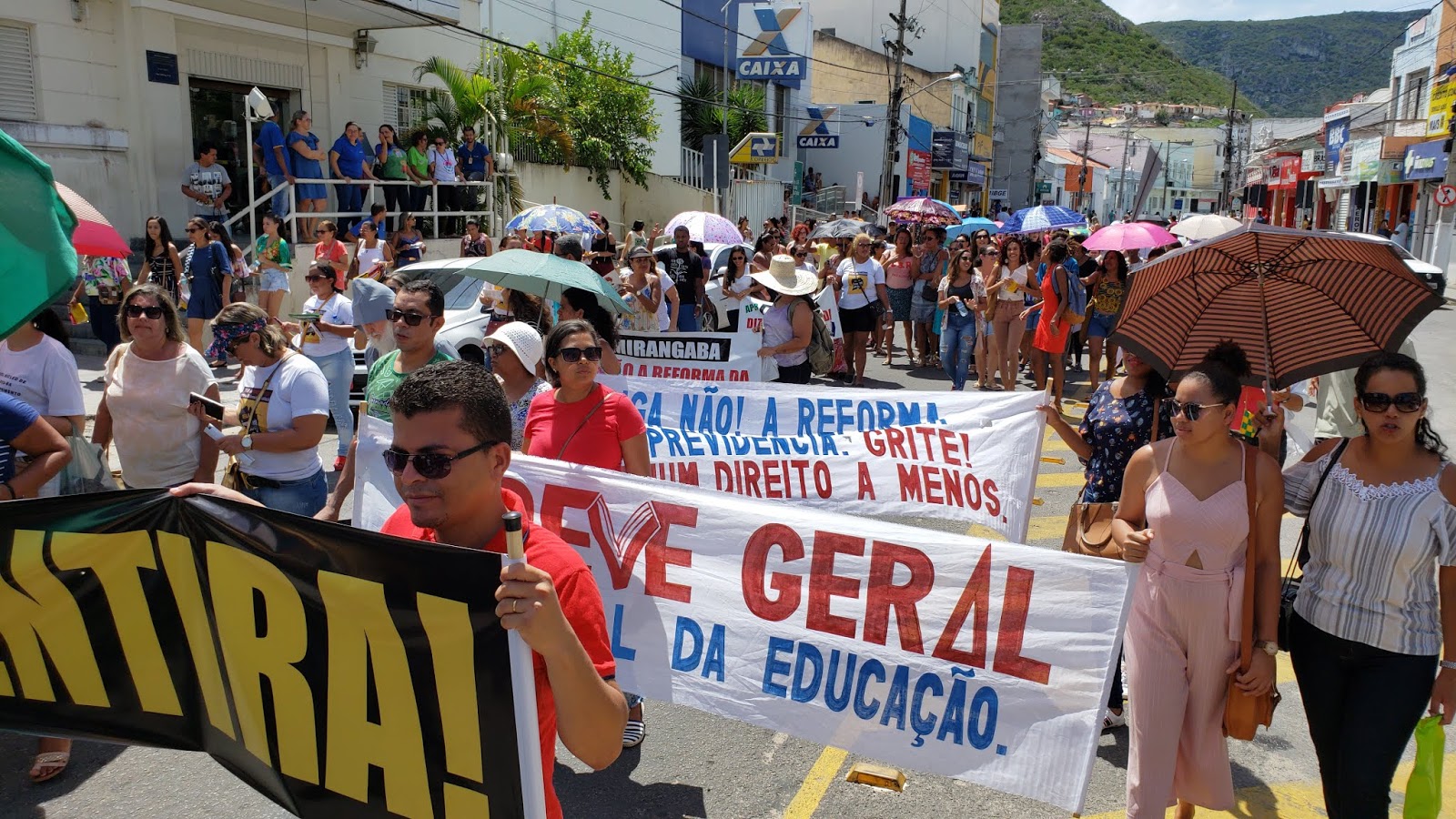 Na manhã desta sexta-feira, 22 de março de 2019, uma manifestação contra a Reforma da Previdência segue pelas ruas da cidade de Jacobina.