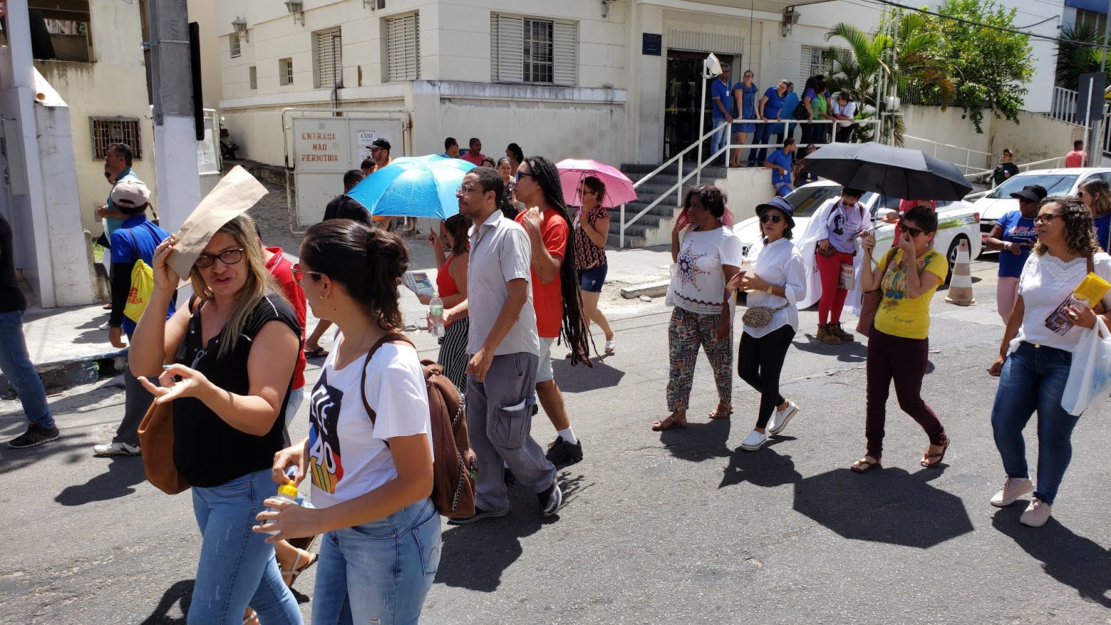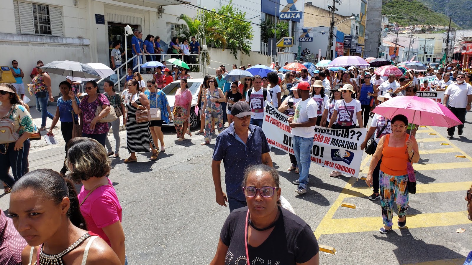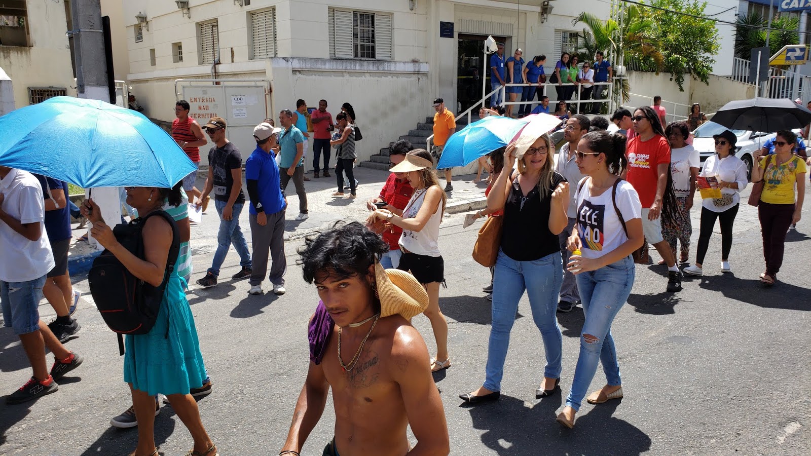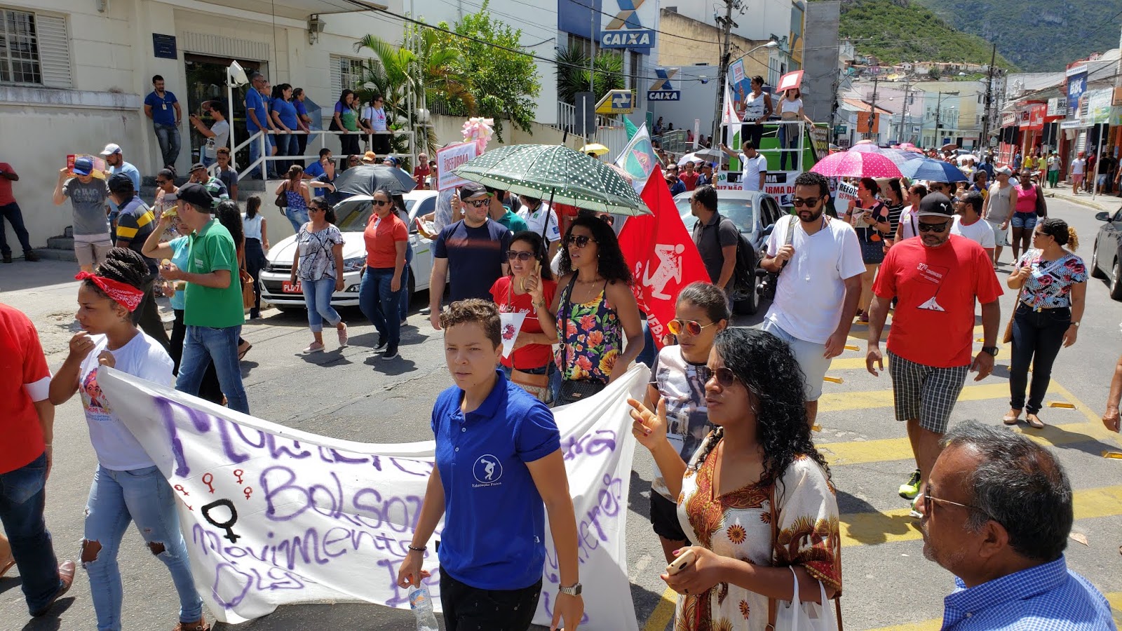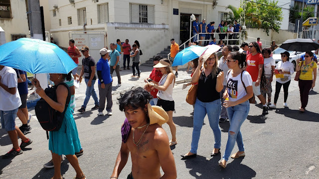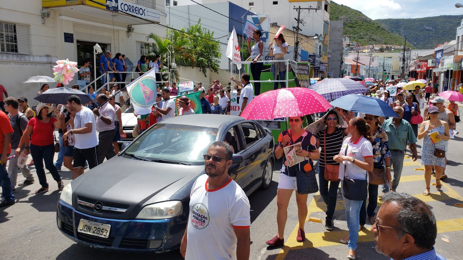 Na manhã desta sexta-feira, 22 de março de 2019, uma manifestação contra a Reforma da Previdência segue pelas ruas da cidade de Jacobina.
