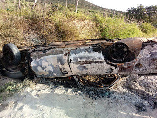 Carro com seis passageiros capota e pega fogo no município de Ponto Novo