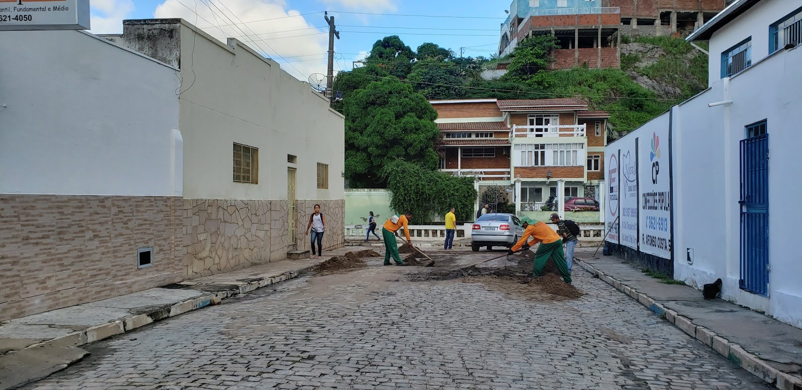 Manhã de quinta-feira, 04 de abril de 2019, e aqui na Rua da Aurora no Bairro do Leader em Jacobina, prepostos do Setor de Limpeza da Prefeitura Municipal seguem em ação.