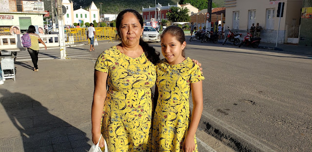 Moradoras do Distrito de Lages do Batata, mãe e filha seguiam pelas ruas da cidade e nos chamou atenção por estarem lindas e vestidas com roupas iguais.