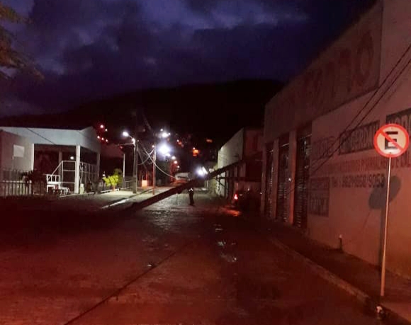 Na madrugada desta sexta-feira, 12 de abril de 2019, um poste da rede elétrica caiu na Rua Florisvaldo Barberino, próximo a Praça do Céu, no Bairro da Missão em Jacobina.