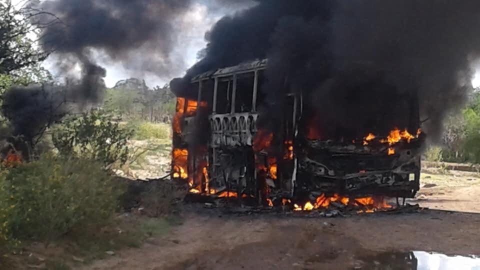 Um ônibus da empresa Falcão Real (São Luiz), que faz linha de Juazeiro para Uauá (BA) pegou fogo na tarde desta quarta-feira (17).