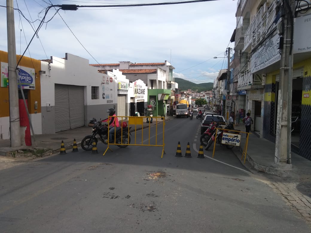 Comerciantes insatisfeitos com rua fechada por empresa de construção civil em Jacobina