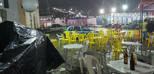 Chuva surpreende foliões interrompe show em barzinho na Praça Castro Alves em Jacobina