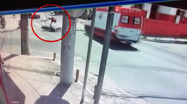 Um jovem de 20 anos morreu depois que a motocicleta que ele pilotava foi atingida por uma ambulância do Serviço de Atendimento Móvel de Urgência (Samu), nesta segunda-feira (22), na cidade de Alagoinhas, a cerca de 125 km de Salvador. Uma câmera de segurança registrou o momento do acidente.