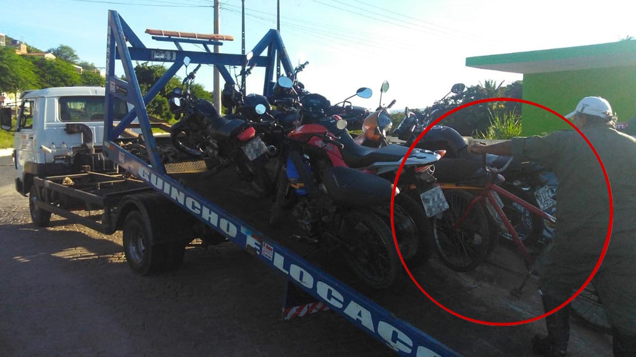 Uma imagem publicada neste sábado, 27, que mostra sete motocicletas e uma bicicleta sendo recolhidas durante uma blitz do Serviço Municipal de Tráfego e Transportes (SMTT), em Jacobina, acabou viralizando na web.