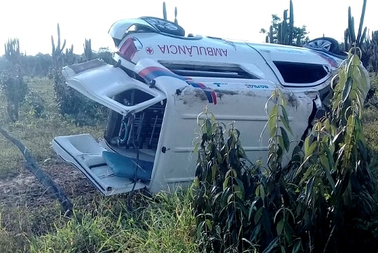 Um carro da Secretaria de Saúde de Valente bateu na traseira de uma ambulância, nesta segunda-feira (13), no trecho da rodovia BA-120 que liga Riachão do Jacuípe a Conceição do Coité. Com o impacto, a ambulância saiu da pista e capotou.