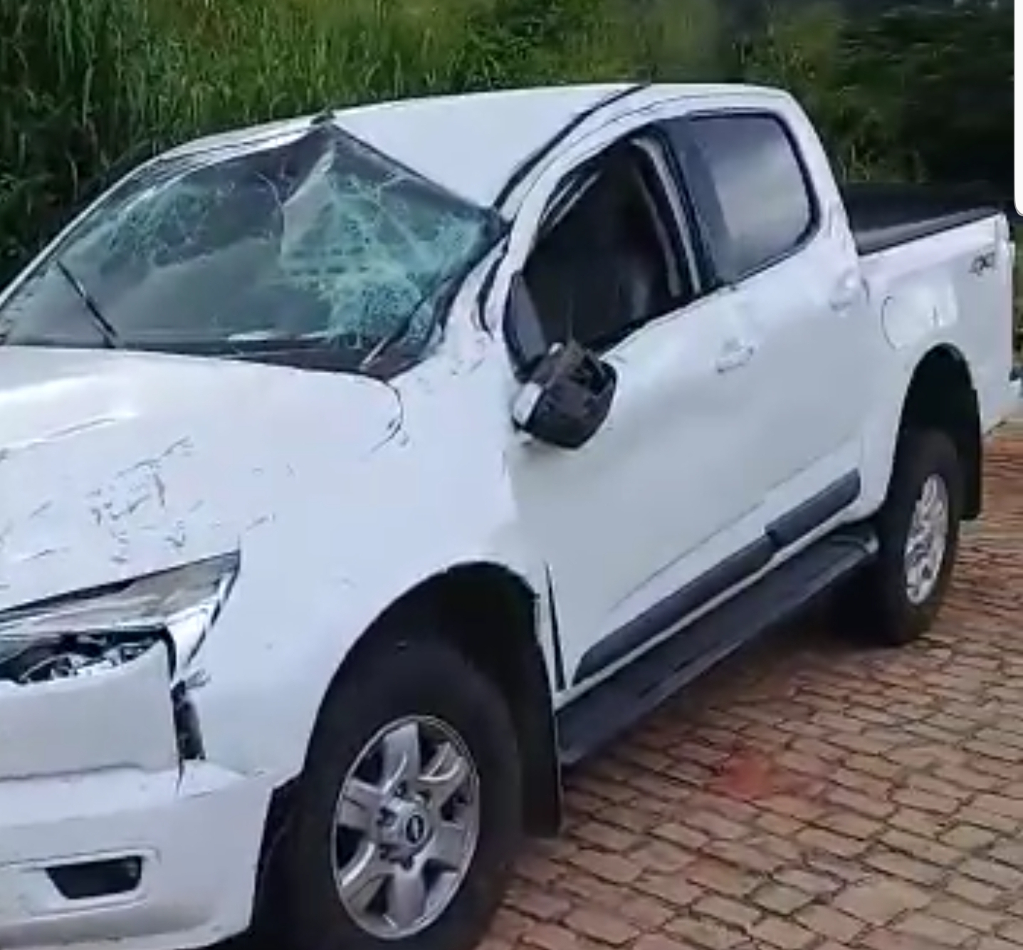 Não há informações sobre as circunstâncias, nem se alguém ficou ferido, no acidente que deixou o veículo com a frente destruída. Machas de sangue foram observadas dentro e fora do veículo.