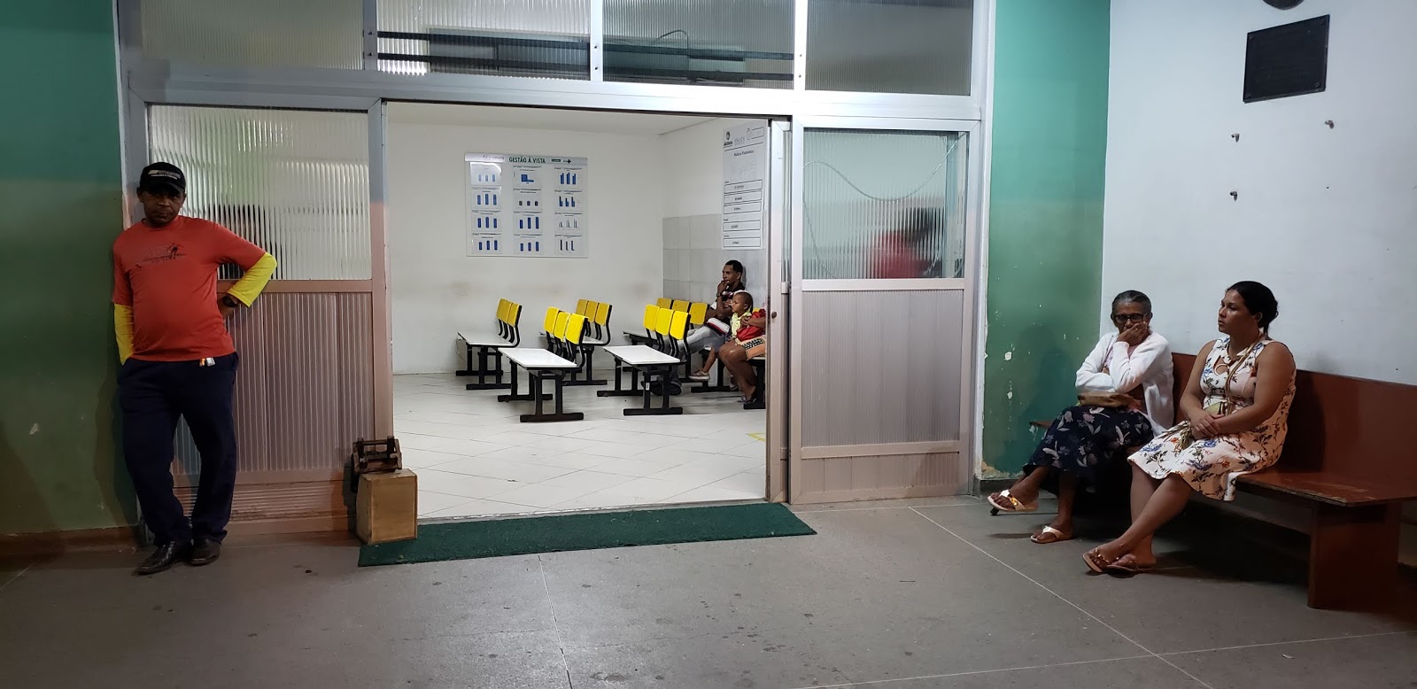 Às 21:40h, momento em que já haviam poucas pessoas aguardando atendimento.
