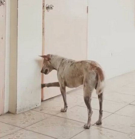Um cão foi filmado arranhando desesperadamente a porta de uma sala de aula em universidade de Pampanga (Filipinas).