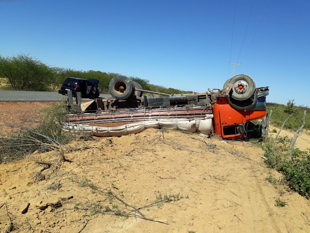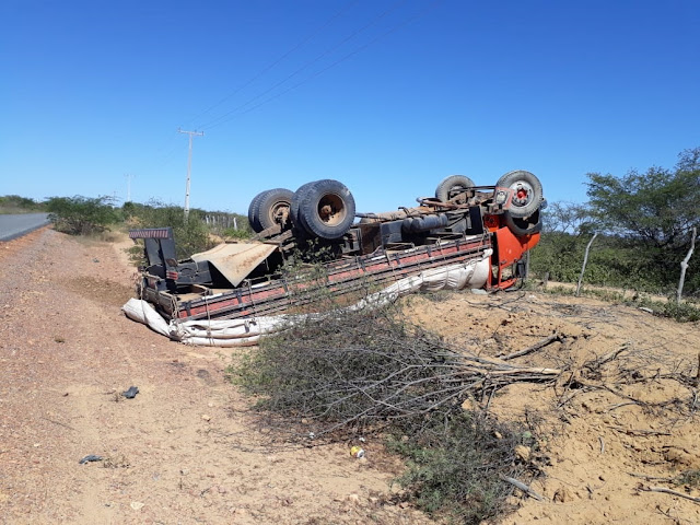 Na tarde deste sábado 25 de maio de 2019, um caminhão vermelho capotou na BR 324, altura do povoado de Novo Achado, entre Ourolândia e Umburanas.
