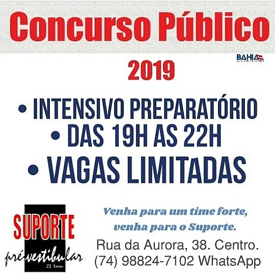 Vagas limitadas para o Intenso Preparatório para Concurso Público no Suporte Pré-vestibular em Jacobina