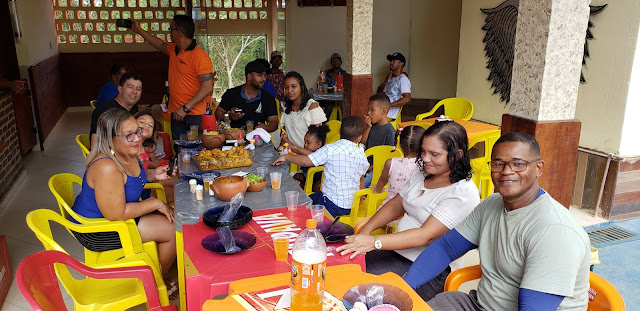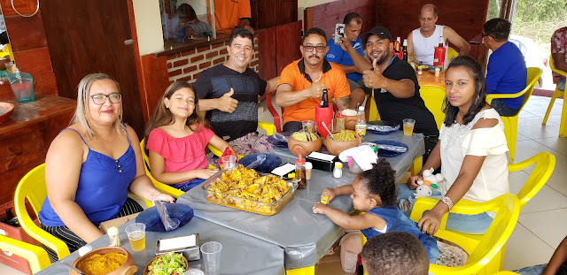 Tarde de sábado, 08 de junho de 2019, e aqui no Restaurante Recanto da Chapada, próximo ao acesso para a Rampa de Vôo Livre em Jacobina, pessoas apreciam a deliciosa galinha caipira preparada pela equipe do Marreta.