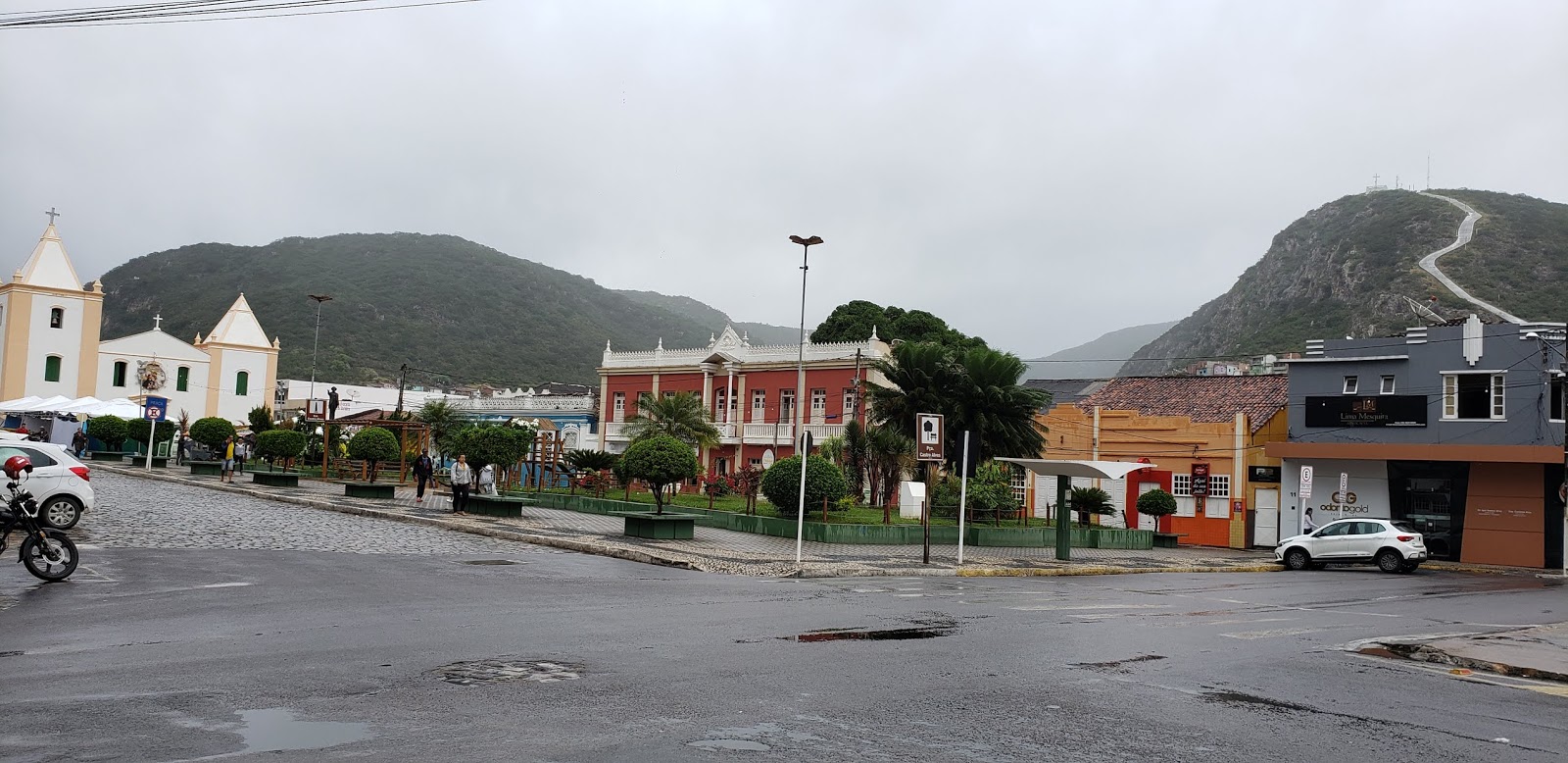 Manhã de segunda-feira, 10 de junho de 2019, e aqui observamos uma fina chuva que cai na Praça Castro Alves em Jacobina.