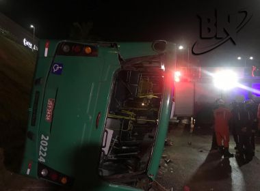 Até o momento, duas pessoas com ferimentos leves esperam pelo atendimento das ambulâncias e se encontram imobilizados em macas no passeio no qual o ônibus caiu.