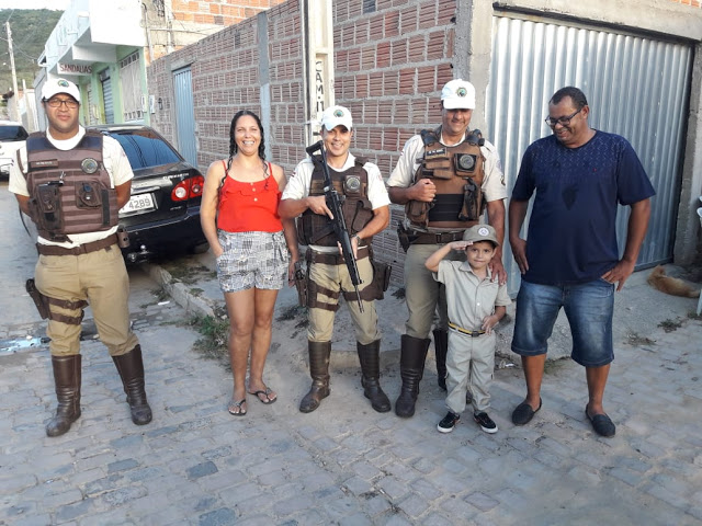O pequeno Flávio Rikelme, morador do bairro Jacobina III, escolheu como tema para sua festa de 4 anos a Polícia Militar da Bahia (PMBA). Os policias se deslocaram para o evento e fizeram a alegria da criança, familiares e amigos presentes nesse dia especial. Por fim, se reuniram para registrar o momento ao lado do garotinho Flávio Rikelme.