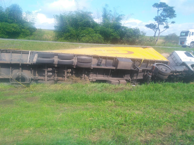 Uma carreta da empresa de transportes Della Volpe caiu no canteiro central da BR-324, na noite da sexta-feira (22). De acordo com o G1, o veículo tombou no KM 560, no município de Candeias e seguia no sentido Feira de Santana. Até a manhã deste sábado (22) a carreta ainda estava no canteiro central esperando por um guincho para ser retirado do local. Segundo a Polícia Rodoviária Federal ninguém ficou ferido e o trânsito não foi afetado.