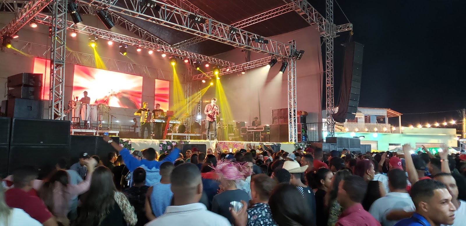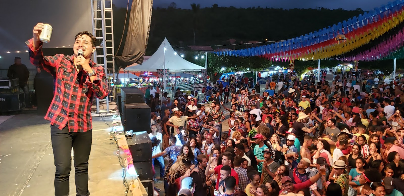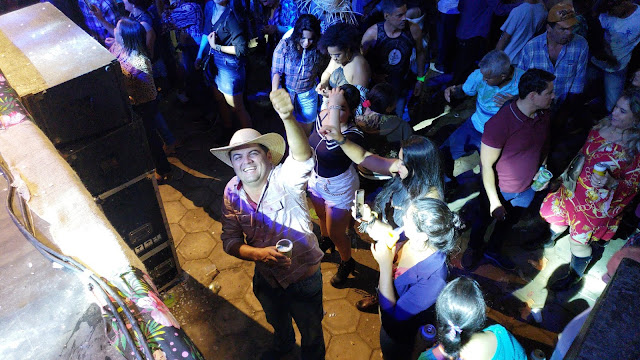 Madrugada de domingo, 30 de junho de 2019, e aqui na Praça Manoel Novaes em Caém, pessoas curtem o show do Túlio Rocha.