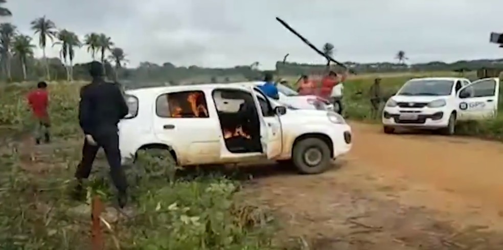 Equipes de Vigilância Patrimonial foram atacadas por homens, na manhã de terça-feira (2), após o processo de reintegração de posse do terreno de uma empresa, na zona rural de Eunápolis, no sul da Bahia. Conforme a Polícia Civil, três vigilantes ficaram feridos e carros foram incendiados. [Veja no vídeo acima]