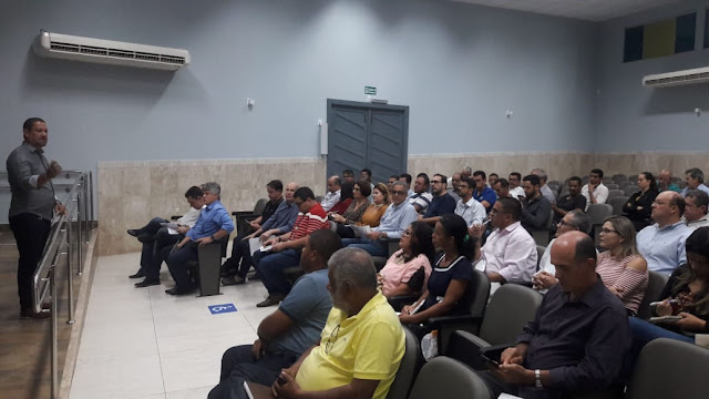 Na manhã desta sexta-feira, 05 de julho de 2019, o prefeito de Caém Gilberto Matos, além de gestores de várias cidades da região participam de reunião sobre articulação e funcionamento das Centrais de Associações Comunitárias para a Gestão de Sistema de Saneamento, na Associação Comercial e Industrial de Jacobina.