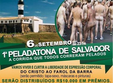 Adepto do naturismo, o cantor de arrocha e motorista de aplicativos Valter das Virgens decidiu promover uma celebração do estilo na capital baiana. Mas, ao invés de fazer uma festa, ele pretende realizar a "1ª Peladatona de Salvador", uma corrida do Cristo ao Farol da Barra, em que todos os participantes deverão correr nus. O evento está agendado para às 23h do dia 6 de setembro.