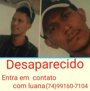 Um rapaz conhecido como Paulinho, morador do povoado do Brejo Grande de Miguel Calmon, encontra-se desaparecido. Segundo os familiares ele saiu de casa ontem, 17, por volta das 5:00 da manhã e até agora não voltou.
