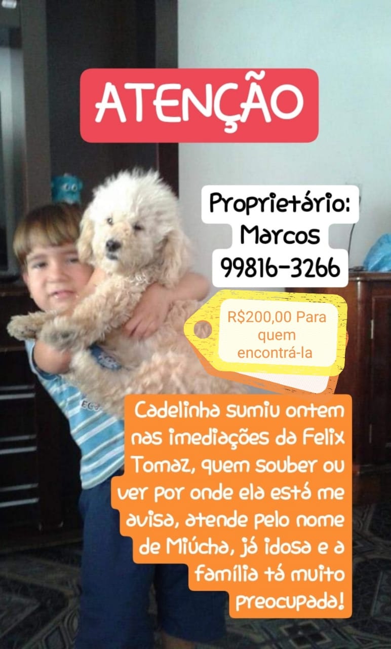 Gratifica-se com R$ 200,00 a quem encontrou a cachorrinha Miúcha em Jacobina