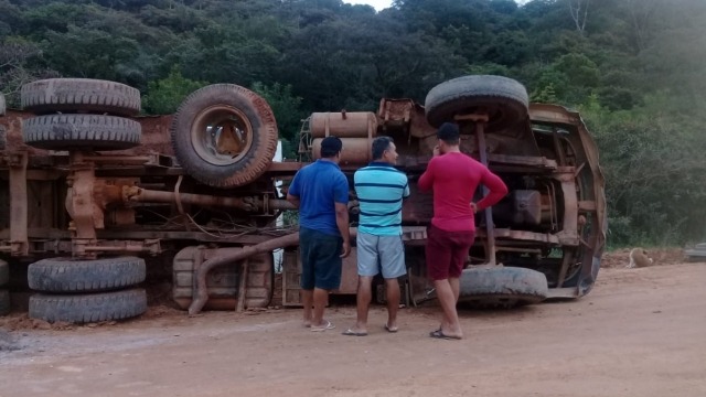 Caçamba tomba na estrada do Mucambo em Miguel Calmon na Bahia