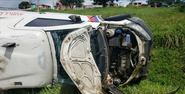 De acordo com informações passadas ao Calmon Noticias, um outro veículo de dados não informados colidiu no fundo da ambulância, fazendo com que a mesma tombasse na pista.