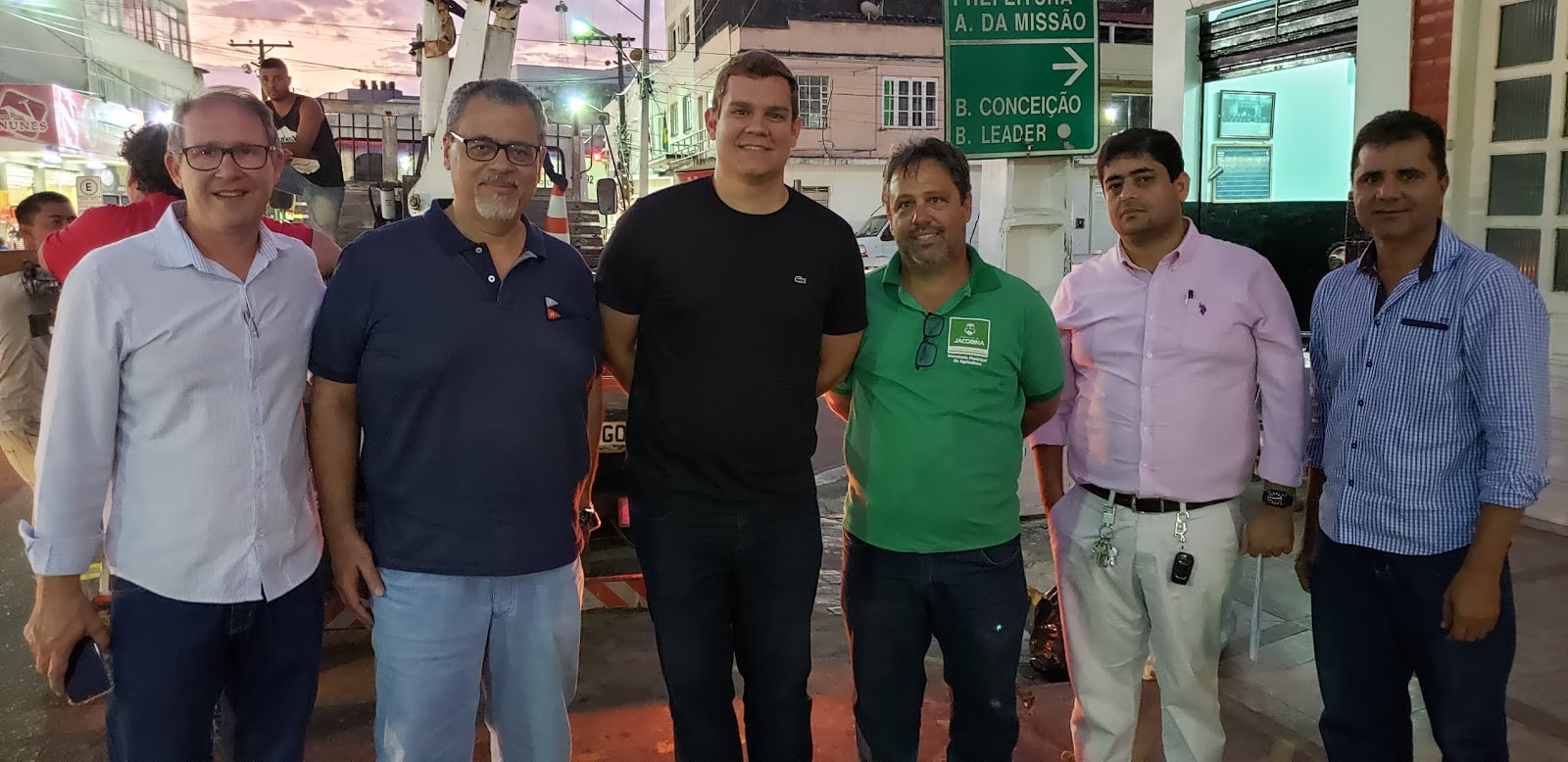 No final da tarde desta segunda-feira, 26 de agosto de 2019, o prefeito Luciano Pinheiro esteve acompanhando o início do projeto Banho de Luz, na Praça Castro Alves em Jacobina.