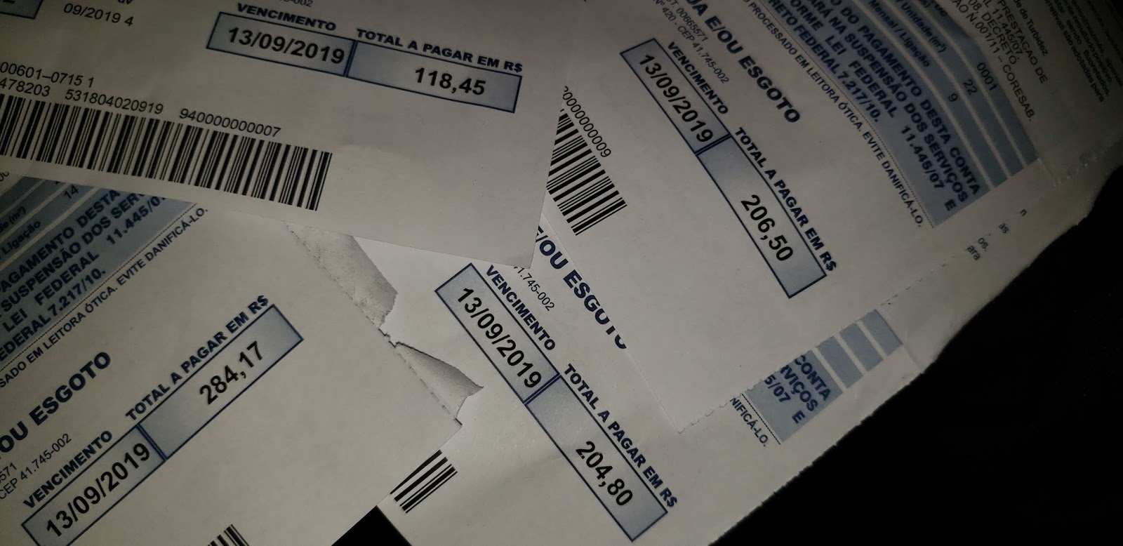 As contas de água estão chegando com um valor acima do esperando, o que era entorno de 35, 40 reais, passou para 100, 150, 200, 250 e até a R$ 284,17. Com taxa de esgoto em 80%.