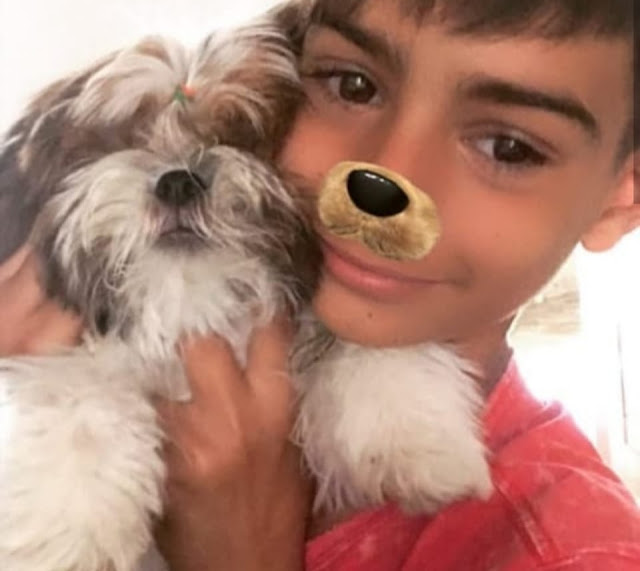 A cachorrinha que atende pelo nome Amora da raça Shi-tzu, é muito apegada a uma criança que chora e aguarda por sua volta.