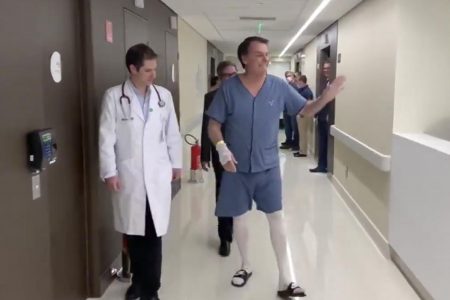 O boletim médico divulgado nesta quinta-feira pelo hospital informou que o quadro de saúde do presidente evolui bem, mas Bolsonaro ainda se alimenta pela veia, por meio de uma sonda.