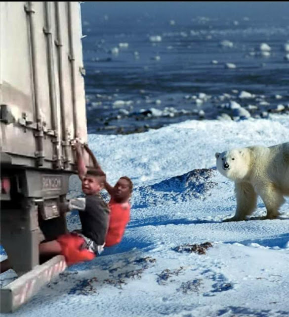 Internautas também passaram a compartilhar a montagem de uma mulher no fundo de um caminhão, informando que a mãe dos garotos que segue no encalço dos filhos.