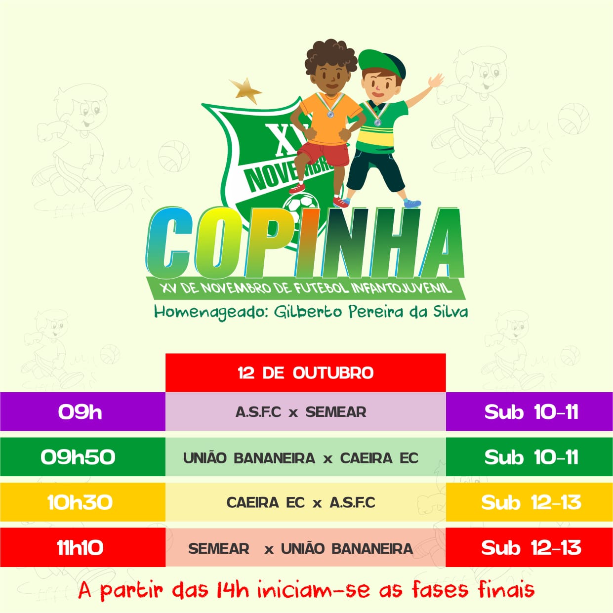 Próximo sábado, 12 de outubro de 2019, Dia da Crianças tem a Copinha XV de Novembro de Futebol Infanto-juvenil.