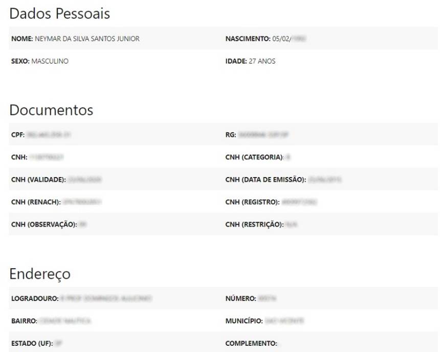 Detran vaza dados pessoais de quase 70 milhões de brasileiros; Neymar e Bolsonaro também aparecem na lista