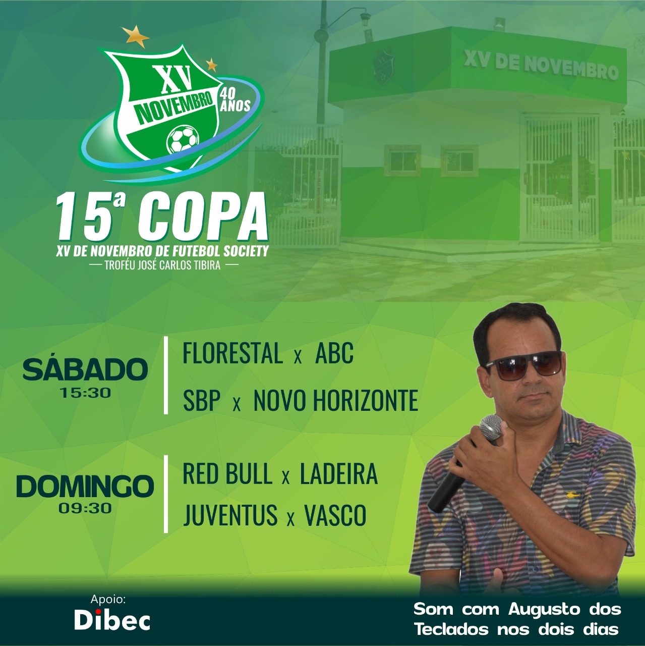 Nos dois dias de jogos, ao final teremos show com Augusto dos Teclados, pra galera relaxar e tomar uma cervejinha gelada, na expectativa da grande final da competição no dia 15 de novembro.