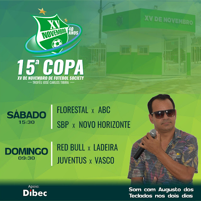 Próximo final de semana dias 19 e 20 de outubro de 2019, tem mais uma rodada da Copa XV de Novembro de Futebol Society. No sábado à partir das 15:30h tem Florestal x ABC e SBP x Novo Horizonte. No domingo a partir das 9:30h tem Ter Bull enfrentando o Ladeira e Juventus x Vasco.