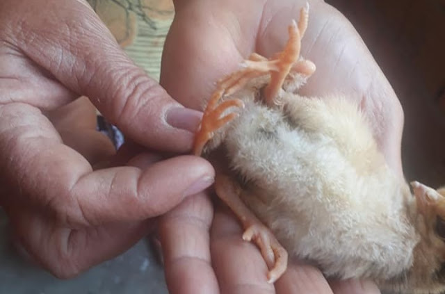 O caso ocorreu na manhã desta sexta-feira 25 de outubro de 2019, aparentemente o pintinho está bem saudável.