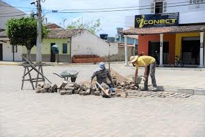 Homens trabalham na recuperação de pavimentação em Novo Paraíso de Jacobina