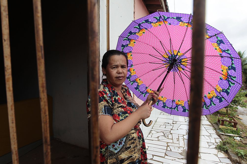 Chovia fino quando chegamos à casa da pindobaçuense mais famosa de todos os tempos. Trancada na residência, porta e janelas lacradas, Erenildes Aguiar Araújo, 40 anos, apareceu depois de alguma insistência.